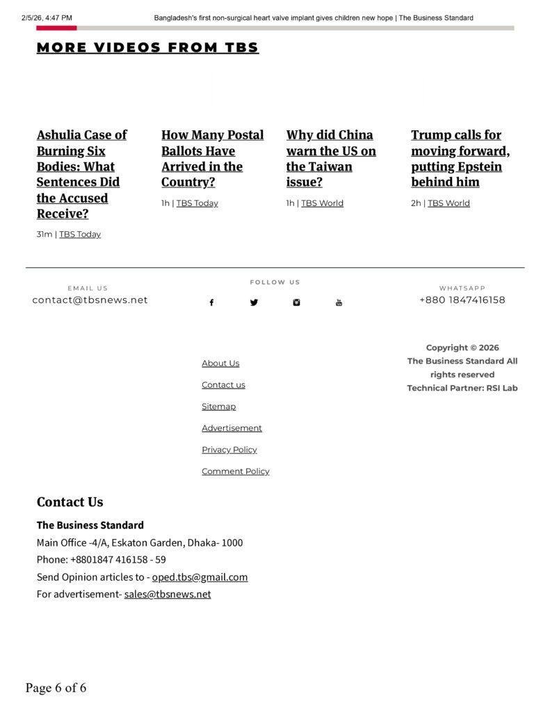 Bangladesh's first non-surgical heart valve implant gives children new hope _ The Business Standard